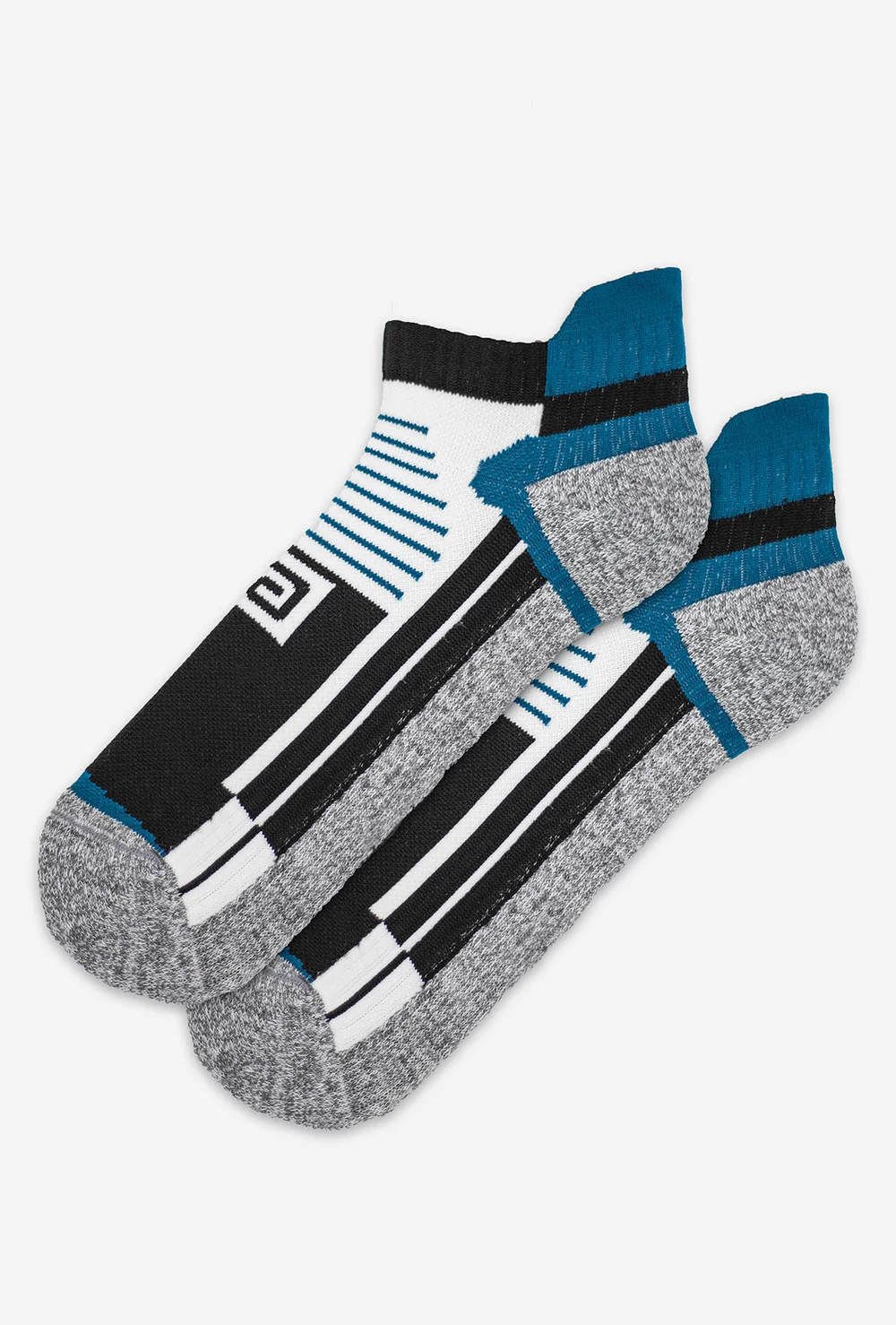 • Zaawansowany splot dzianiny – specjalnie zaprojektowany układ splotów wspomaga cyrkulację powietrza wokół stopy, co przekłada się na lepszą wentylację i komfort noszenia. Pogrubiona dziania na w palcach i pięcie zmniejsza ryzyko otarć i ran.